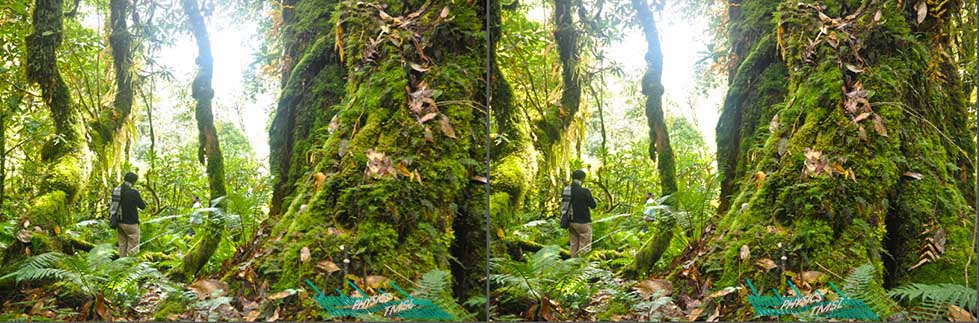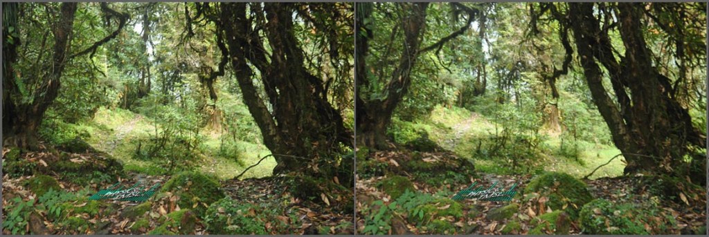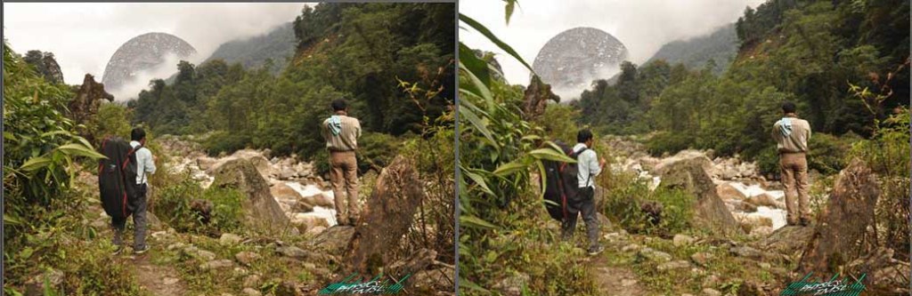 Generally objects very far look the same for both of our eyes. So to take a 3D view of a mountain we need to increase the effective distance of our eyes, i.e., positions of the camera used. This parallel viewing 3D of Mount Khangchendzonga was taken keeping distance between camera positions around 40 feet. So you can feel the 3D topography.