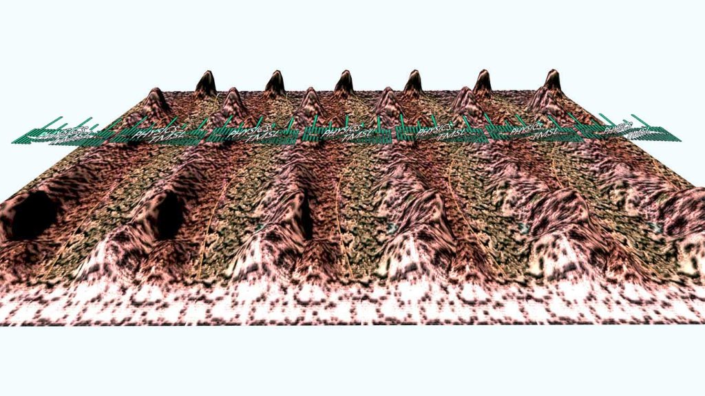 The trick is much complex. Anyway, apply the crossed view method on the next image. Merge the adjacent hills. The larger the image screen, the better the feel is. Mobile phones are not very good for autostereograms.