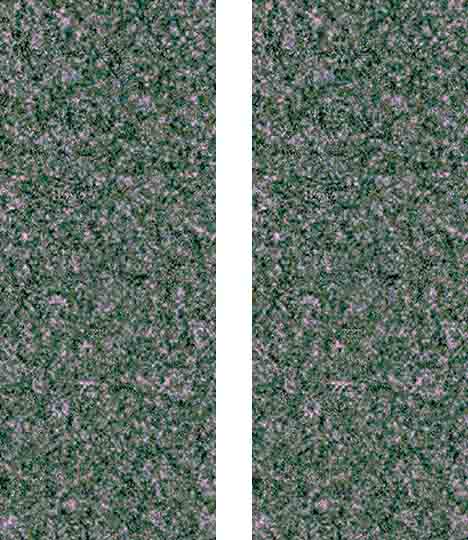 If you use the crossed view method, the same image becomes a stencil. This type of images are sliced stereograms, called autostereograms. It is tricky. You cannot find the difference between the two images below: