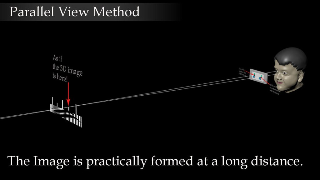 You have seen that for parallel view a smaller image produces better adjustment. But in crossed view it is better to have a large and distant screen. This is the fact because the two images are meant for two different eyes. But see, in the image below, you have to use the parallel view in a large screen: