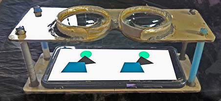 It’s a ‘lost eyes’ stereogram. If you keep the images very close to your eyes, each eye will see the image for itself. But eyes cannot focus to very close things. So, you need two lenses for clear focusing.
