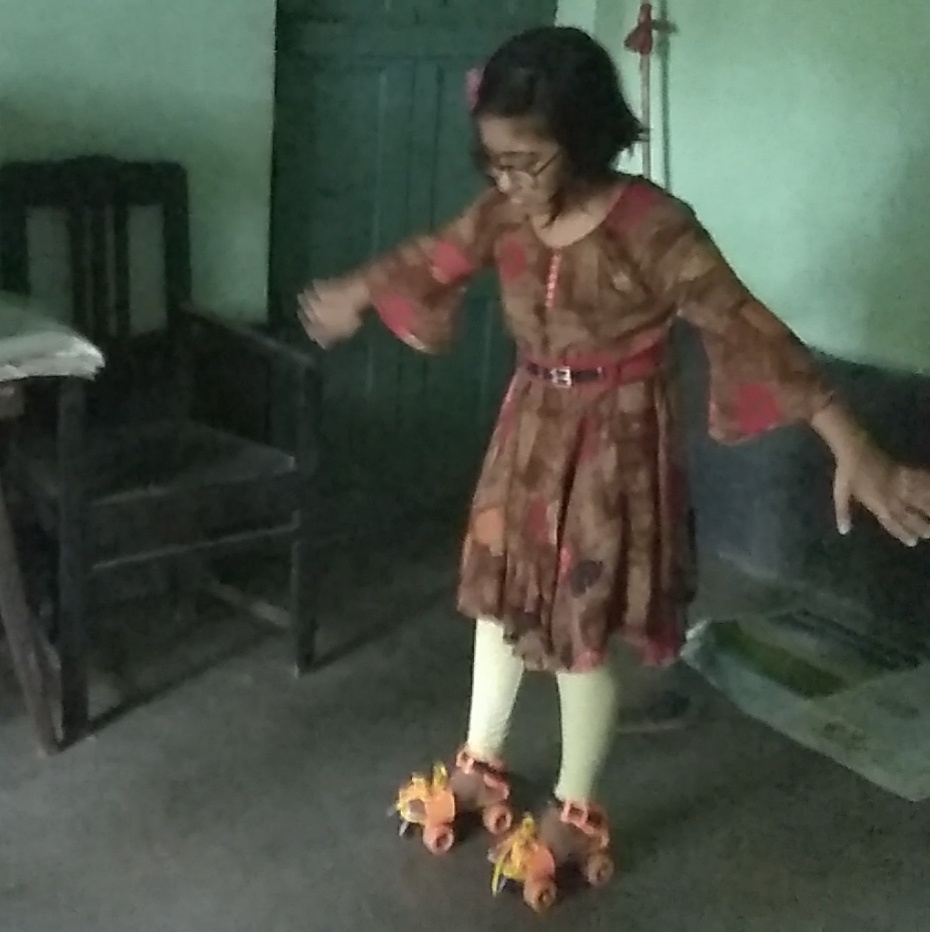 She is a nine-years-old girl who reads in the third standard in an English medium school. In the period of lockdown and afterwards she is confined in the premises of the four walls like many other children and striving to continue a balanced childhood without any friend and open space for playing. Alternatively she plays piano, practises roller skate and kathak dance, draws pictures and installs paper works.