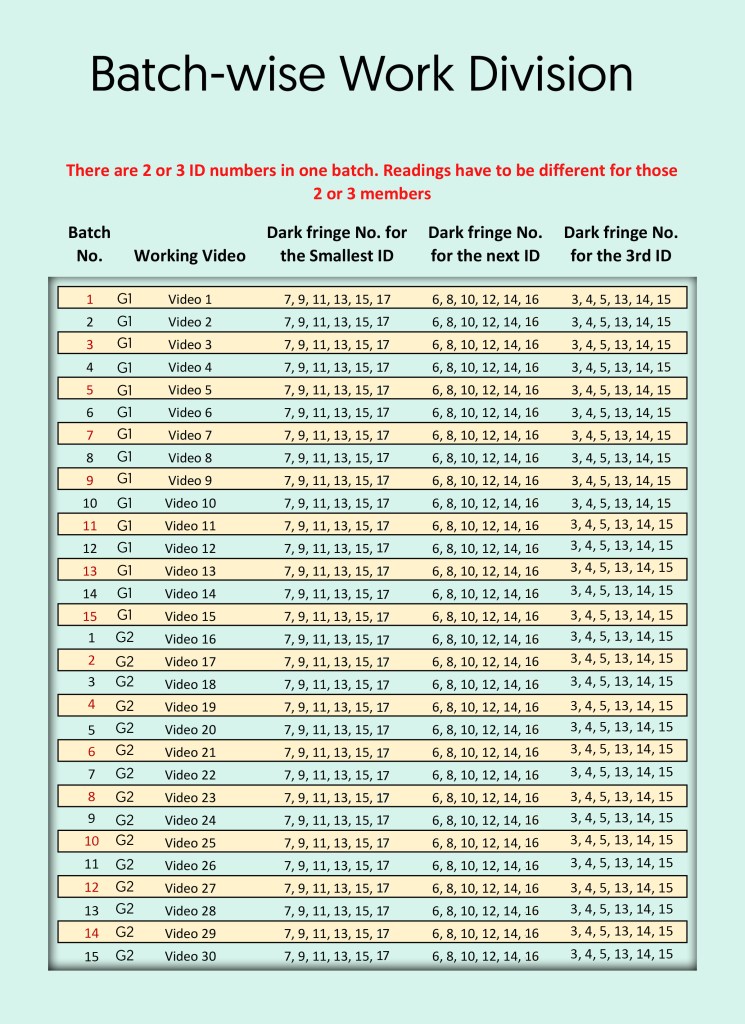 To make a straight line, one has to plot at least 5 points. However. more points may be helpful. So, we suggest to use 6 fringes’ readings for plotting 6 points here.